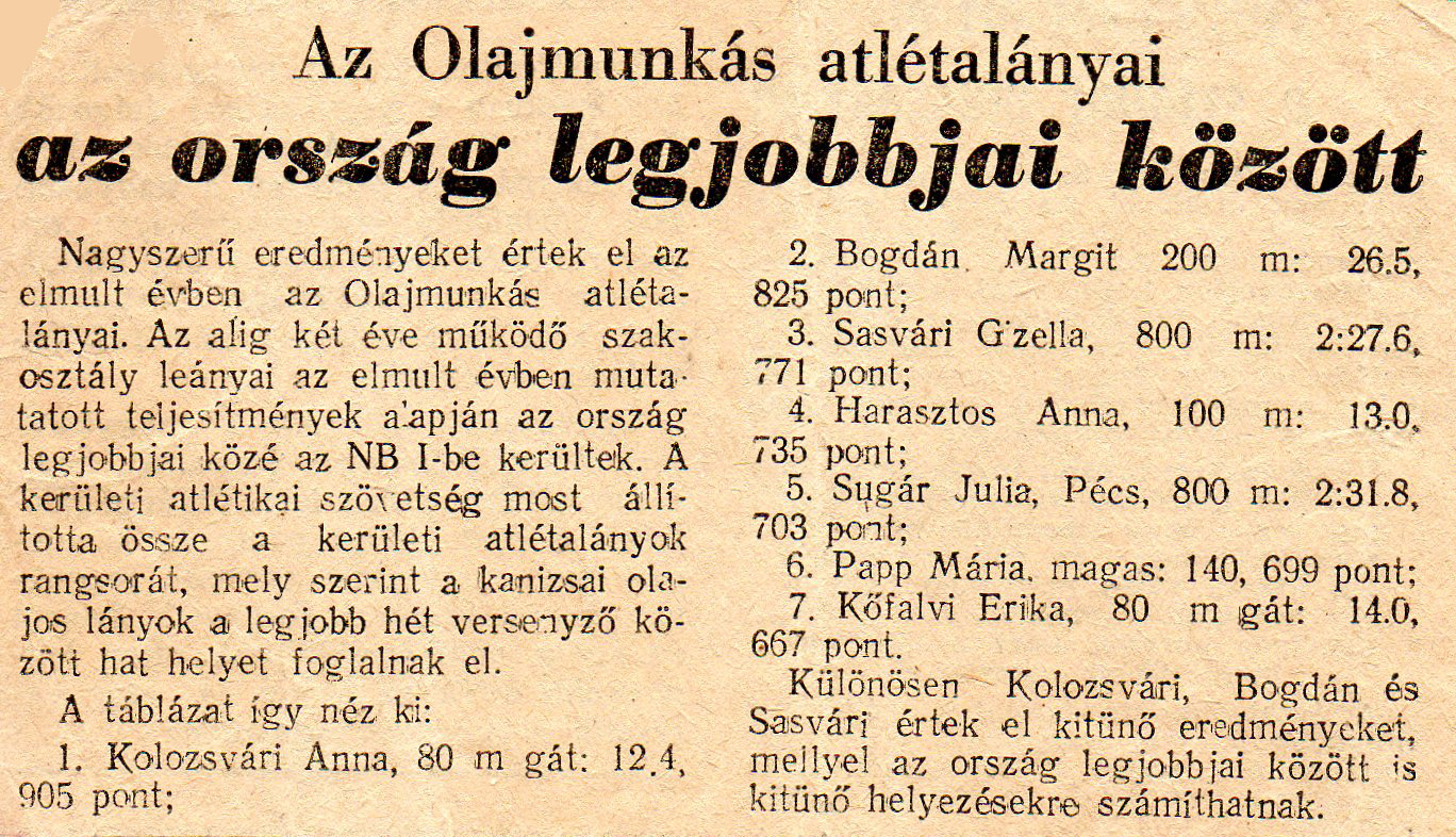 Munkás SE (Olajmunkás) Atlétikai Szakosztálya