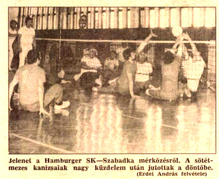 Nagykanizsán rendezték meg a Kanizsa Kupa nemzetközi ülőröplabda tornát. A kétnapos versenyen 2 külföldi és 7 hazai együttes szerepelt. A torna az N. Hamburger SK sikerével zárult, így Nagykanizsán maradt a vándorserleg. SK—Pécsi Lendület 3:0 (13. 9, 10). Nagykanizsa: Földi J., Czimmermann (a képen ő üt), Balogh, Pölcz, Perneczki, Pőcze. Csere: Kardos, Szomjasné, Varga, Szomjas. Edző: Czvetkó Tamás.