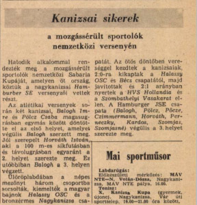 Kanizsai sikerek a mozgássérült sportolók nemzetközi versenyén, 1985
