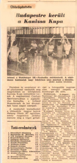 1988. Az N. Hamburger nyerte a II. Kanizsa Kupát