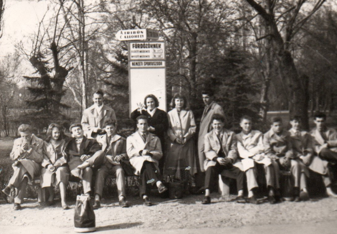 Álló sor: Lakner Gyula (ő volt a csapatkapitány), Szűcs Gabriella (Babi), Tóth Tibor, Fónyadt Péter, Mohácsy Erzsébet (a kép adományozója középen, nyakláncban, becenevén Zsiga, mellúszó volt), Lelkó Attila, Rosta János (becenevén Bimbó), Szász József, Zsigmond Miklós (Micu), Szűcs László, Pálfi István (becenevén Pufi), Béres Katalin